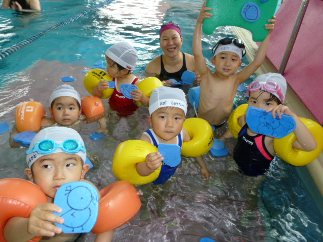 プールを好きになってもらうよう指導します)